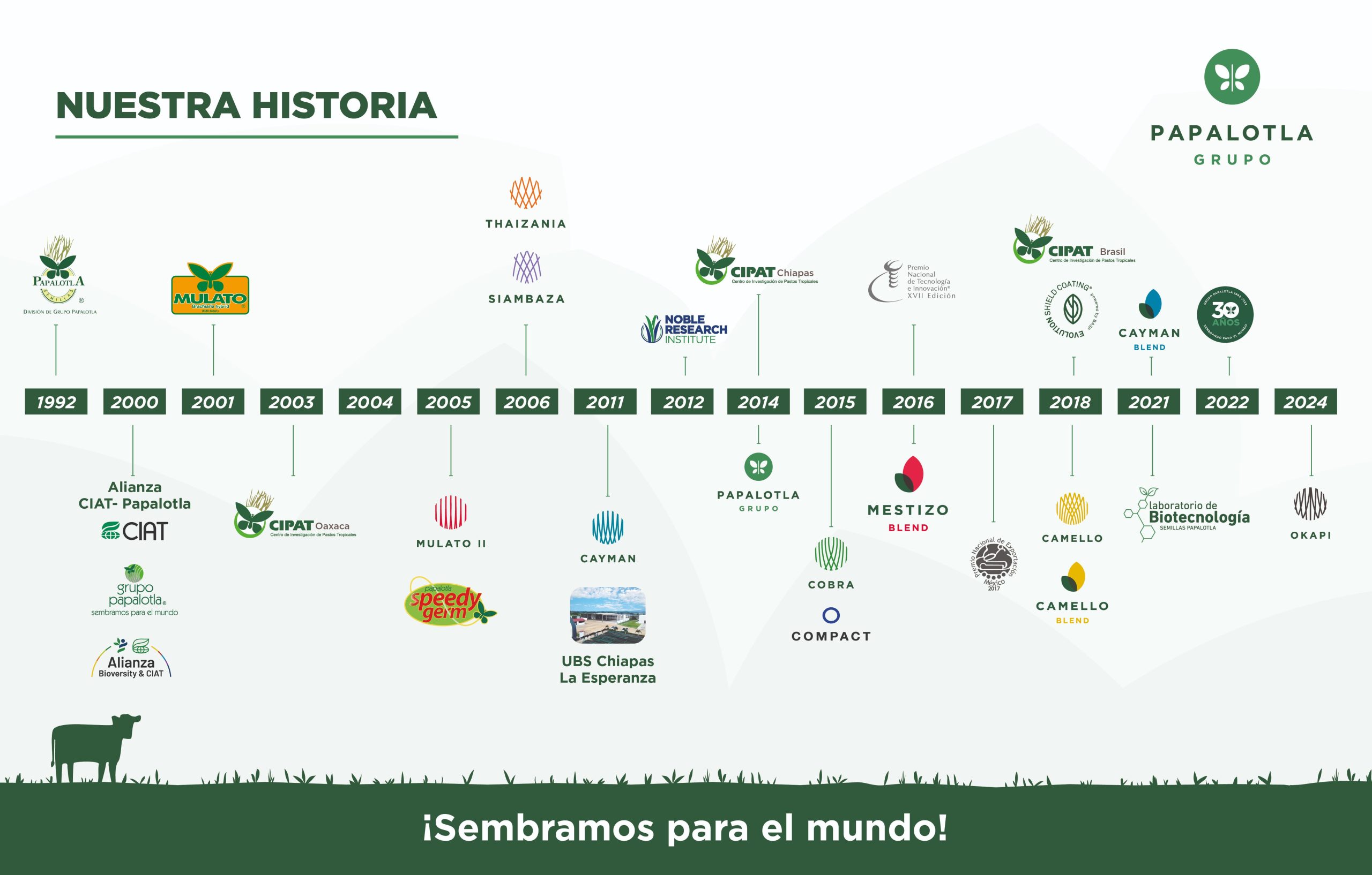 Durante más de 30 años, Grupo Papalotla ha probado cientos de híbridos de Brachiaria en diferentes ambientes para seleccionar aquellos con mejor desempeño bajo diferentes sistemas de manejo y condiciones de producción en los trópicos.